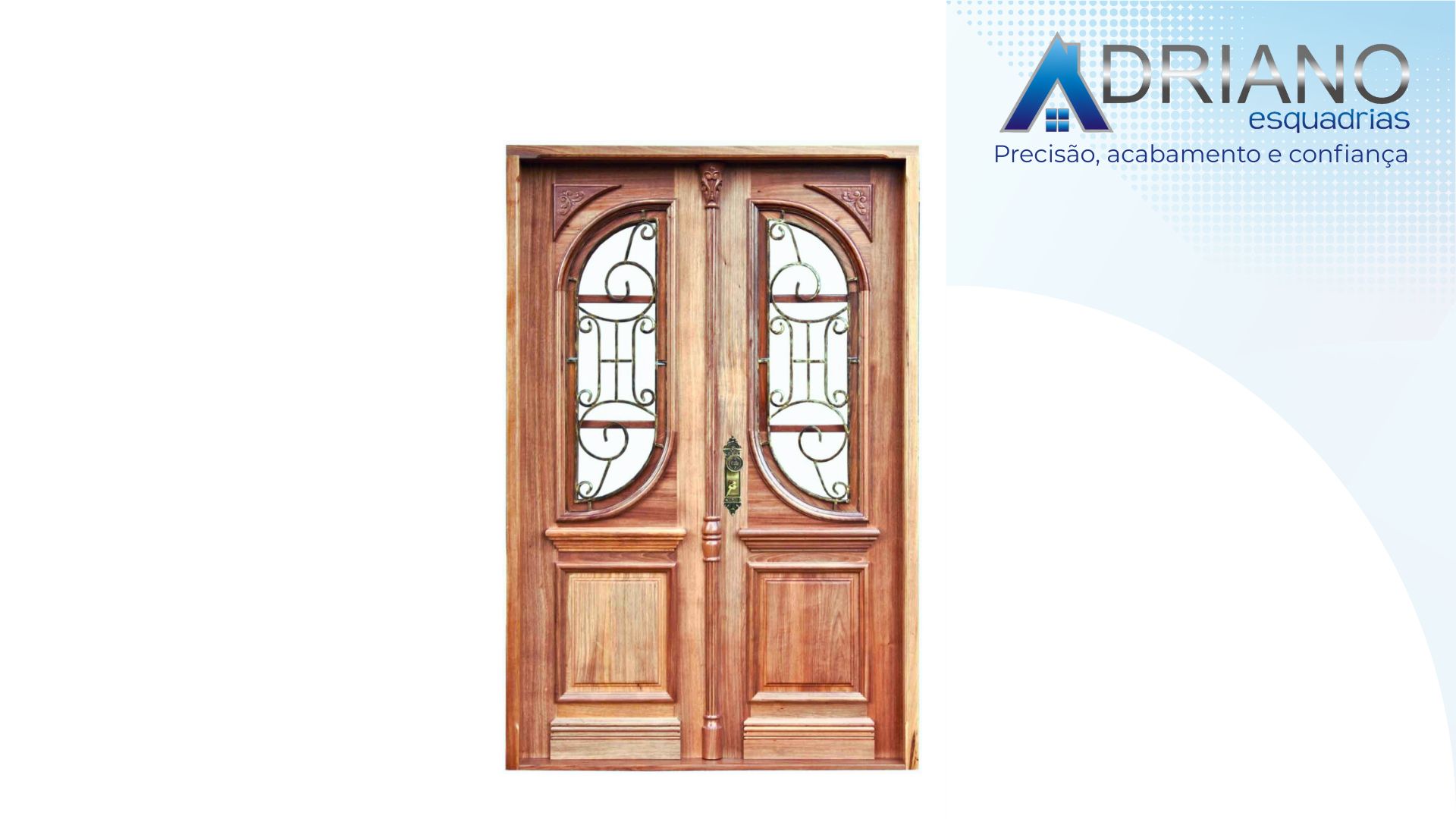Porta de madeira maciça com postigo e grade com duas folhas modelo Clean
