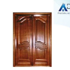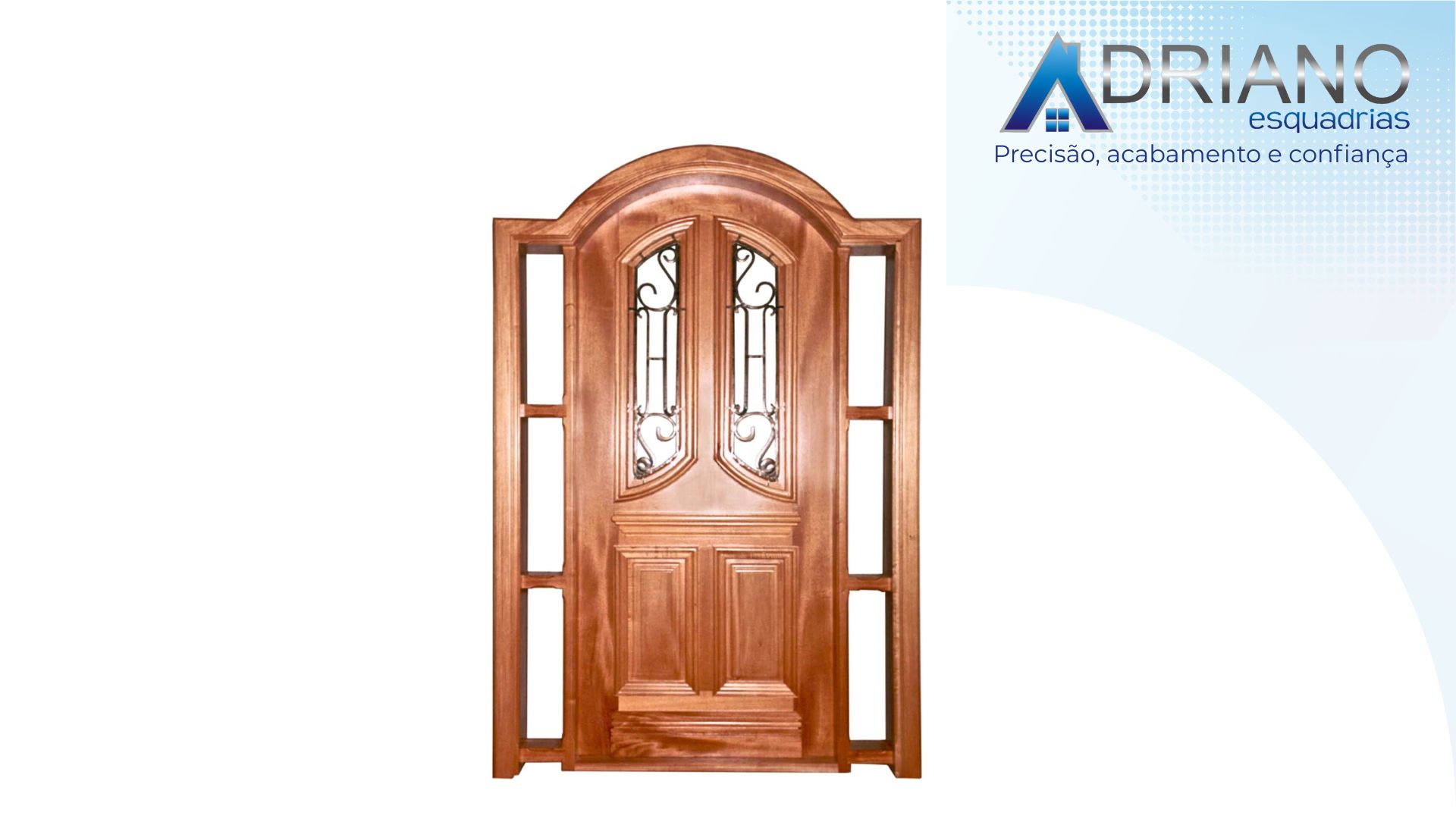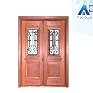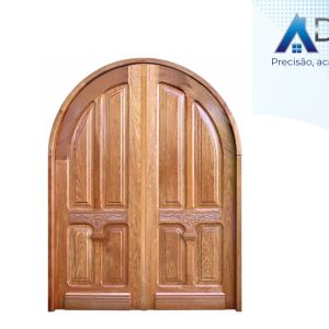 Porta de madeira maciça em arco com grade e postigo e com lateral dupla para vidro em arco