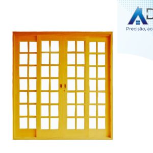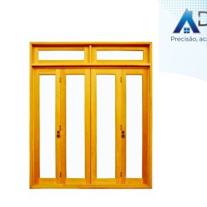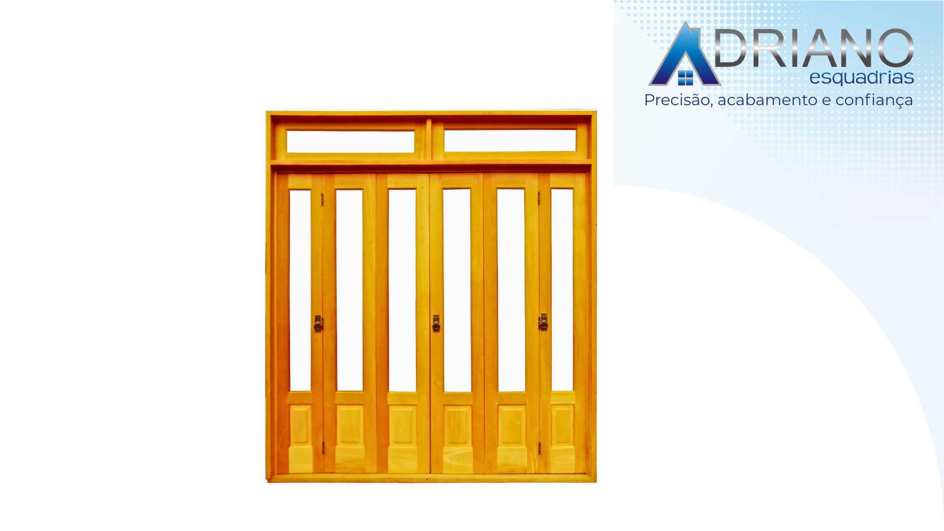 Porta de madeira de abrir pantográfica vidro panorâmico e almofada