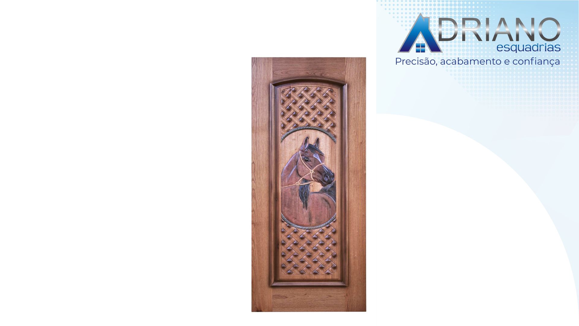 Porta entalhada maciça de madeira modelo Cavalo Mangalarga